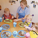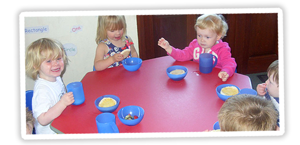 Children look forward to an optional breakfast with a healthy variety of cereals or toast, and a snack in the morning and afternoon - examples might be pancakes, breadsticks or home baked pizza - with a variety of fresh fruit always being served at the same time.Children in the 3-5 rooms have the opportunitiy to make their own snacks and simple meals. They are encouraged to serve themselves at lunch and snack times.